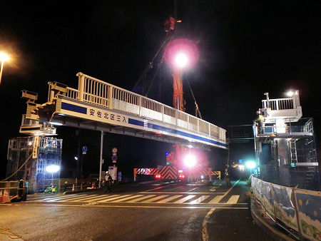 トピックス国道54号可部バイパス三入横断歩道橋鋼桁を夜間架設しました